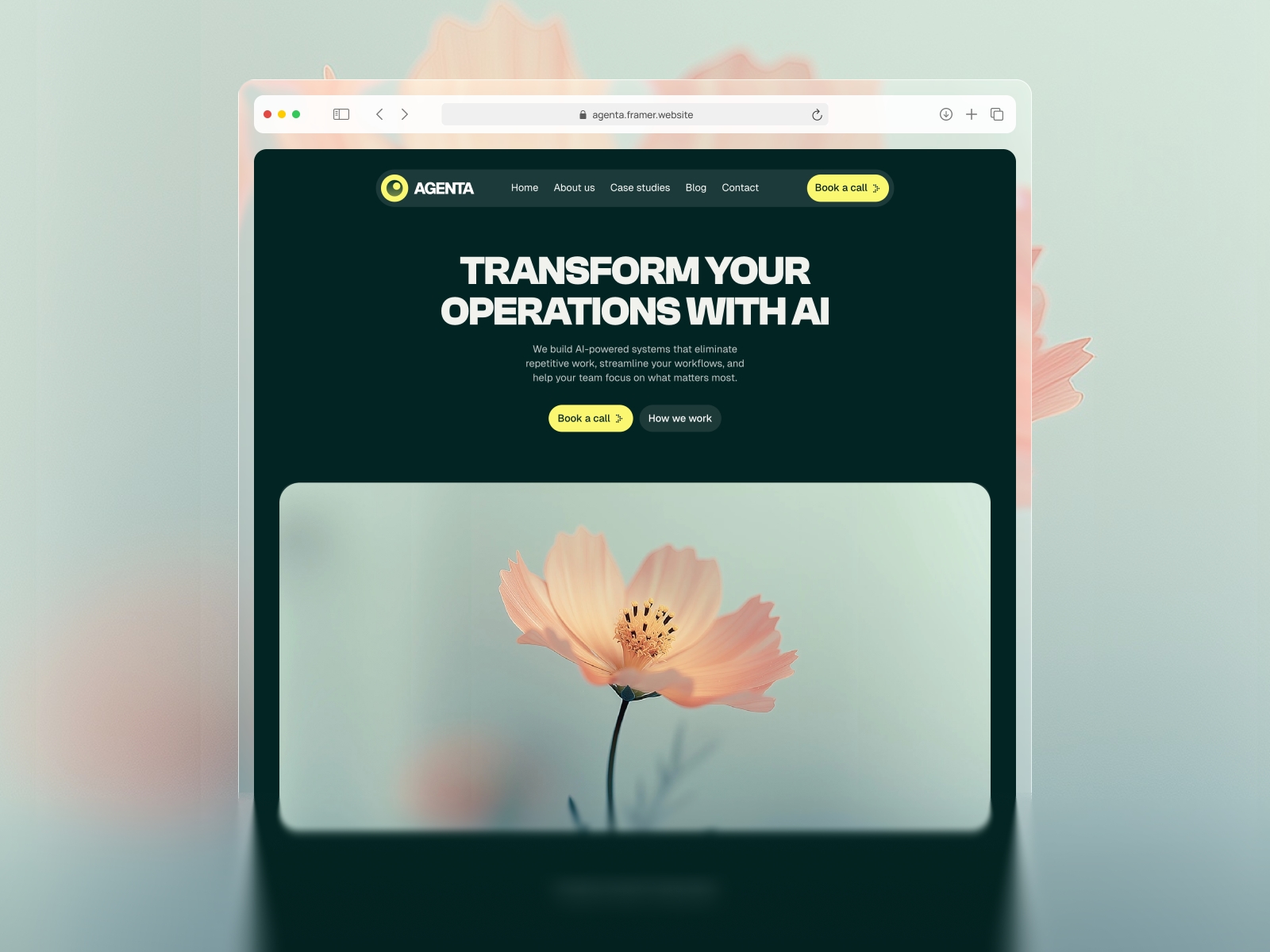 A modern Framer template for agencies, designed to showcase services, case studies, blog content, and conversion-focused pages with a clear structure and scalable CMS. Ideal for AI agencies, creative studios, design teams, and service-based businesses.