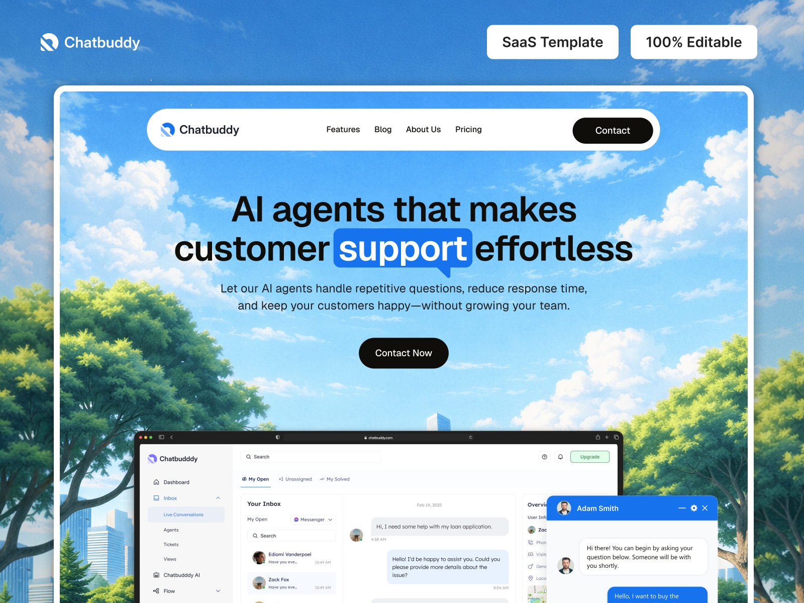 Meet Chatbuddy - a minimal, modern SaaS website template built for startups and founders. Designed with care and focused on conversion, made for product storytelling with an advanced CMS setup, 50+ sections, and fully editable, ready to launch without code.
