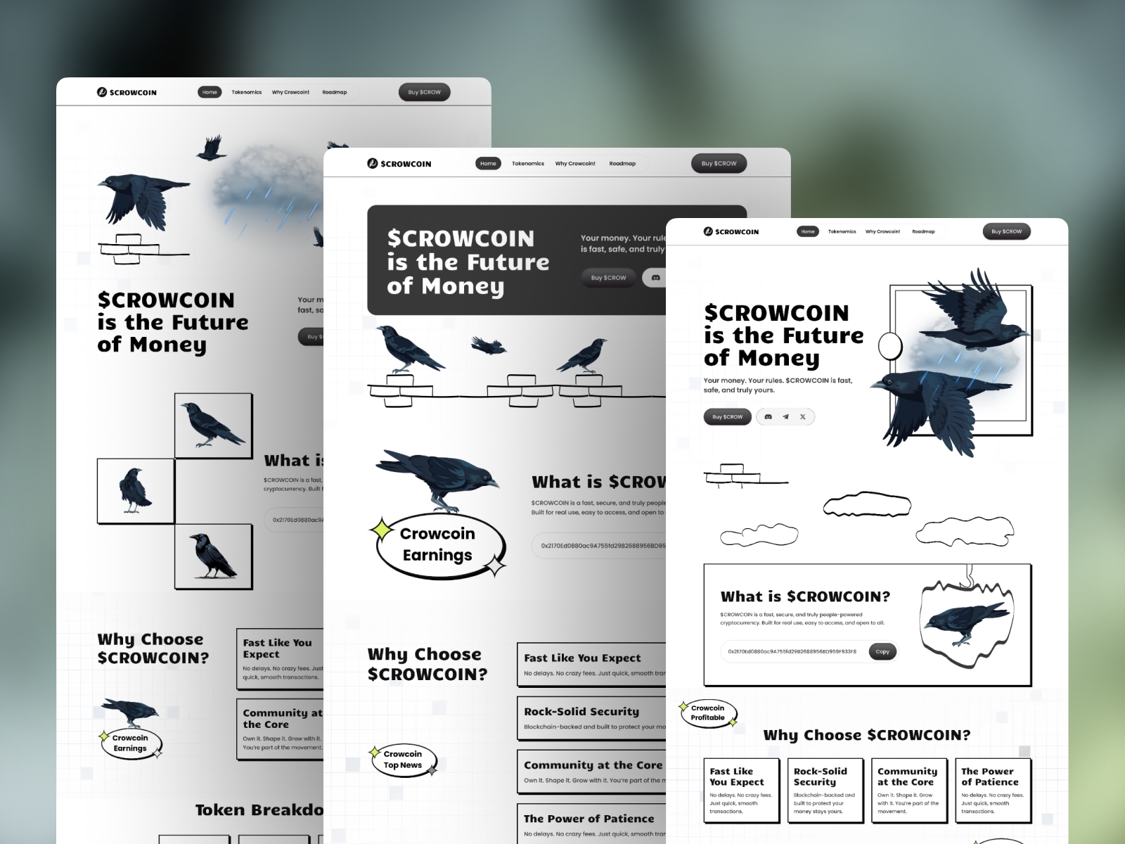 CROWCOIN is a dynamic Framer template crafted for bold, community-powered crypto launches. Designed with animated crow-inspired visuals and structured token sections, it gives DeFi projects a modern and trustworthy digital presence. From tokenomics and staking to roadmap updates and wallet integration, every block is built to educate users and drive action. With three homepage variations included, you can tailor your messaging for different campaigns and audiences.
