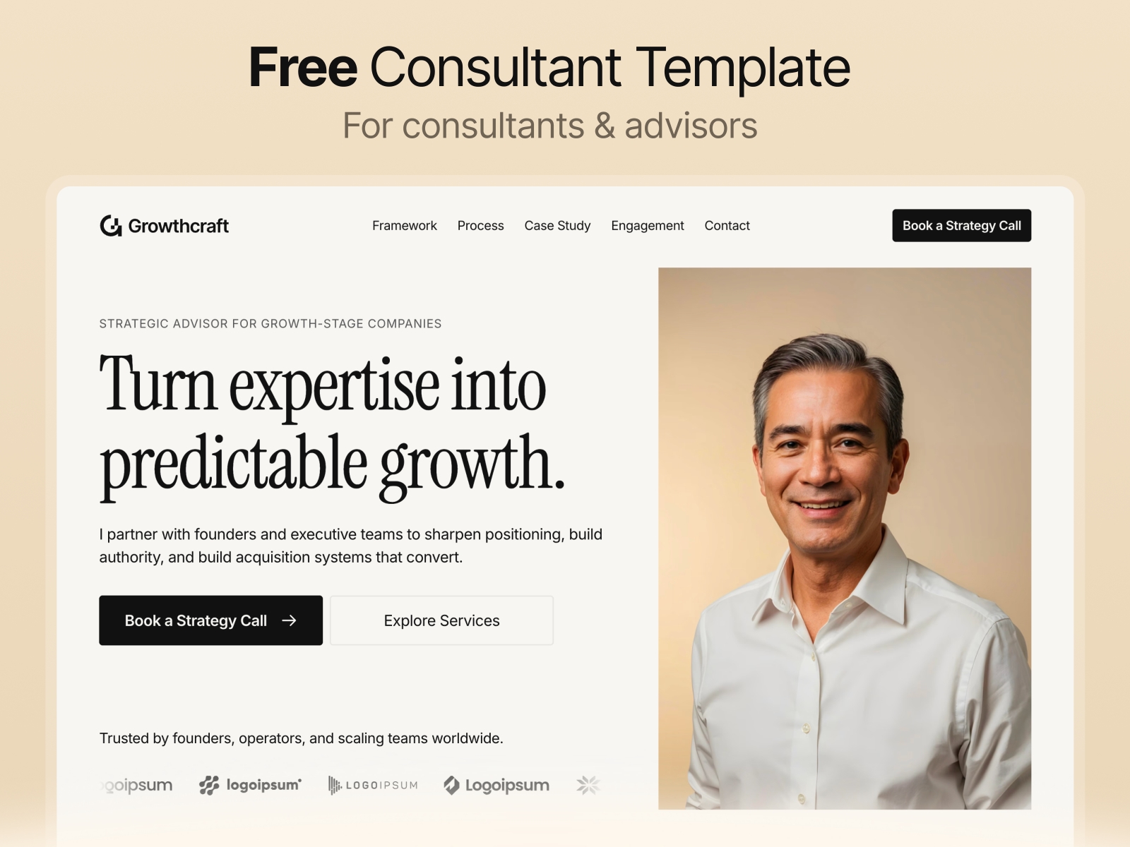 Growthcraft is a premium Framer template for consultants, advisors, and strategists to present frameworks, expertise, and results with clarity. Designed for consulting websites and advisory services that need a professional, structured online presence.