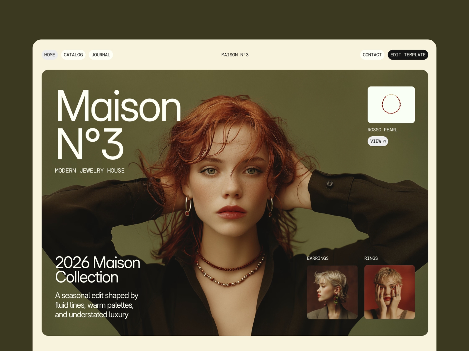 MN°3 is a clean, editorial ecommerce template designed for jewelry designers, boutique brands, and curated product shops that want a timeless look without unnecessary complexity.