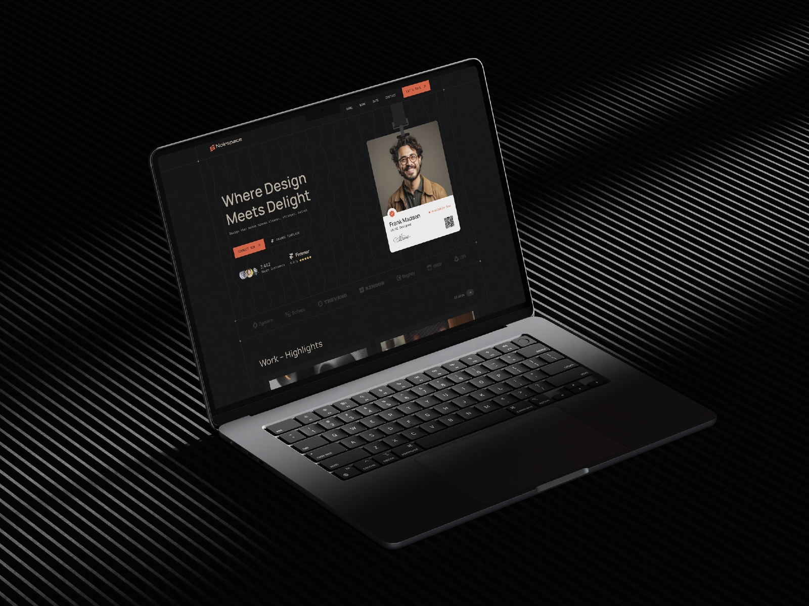 Noirspace is a dark-mode Framer portfolio template for creative designers. Clean layouts, subtle motion, and flexible sections help you showcase projects, services, and results with confidence—fully responsive and easy to customize.