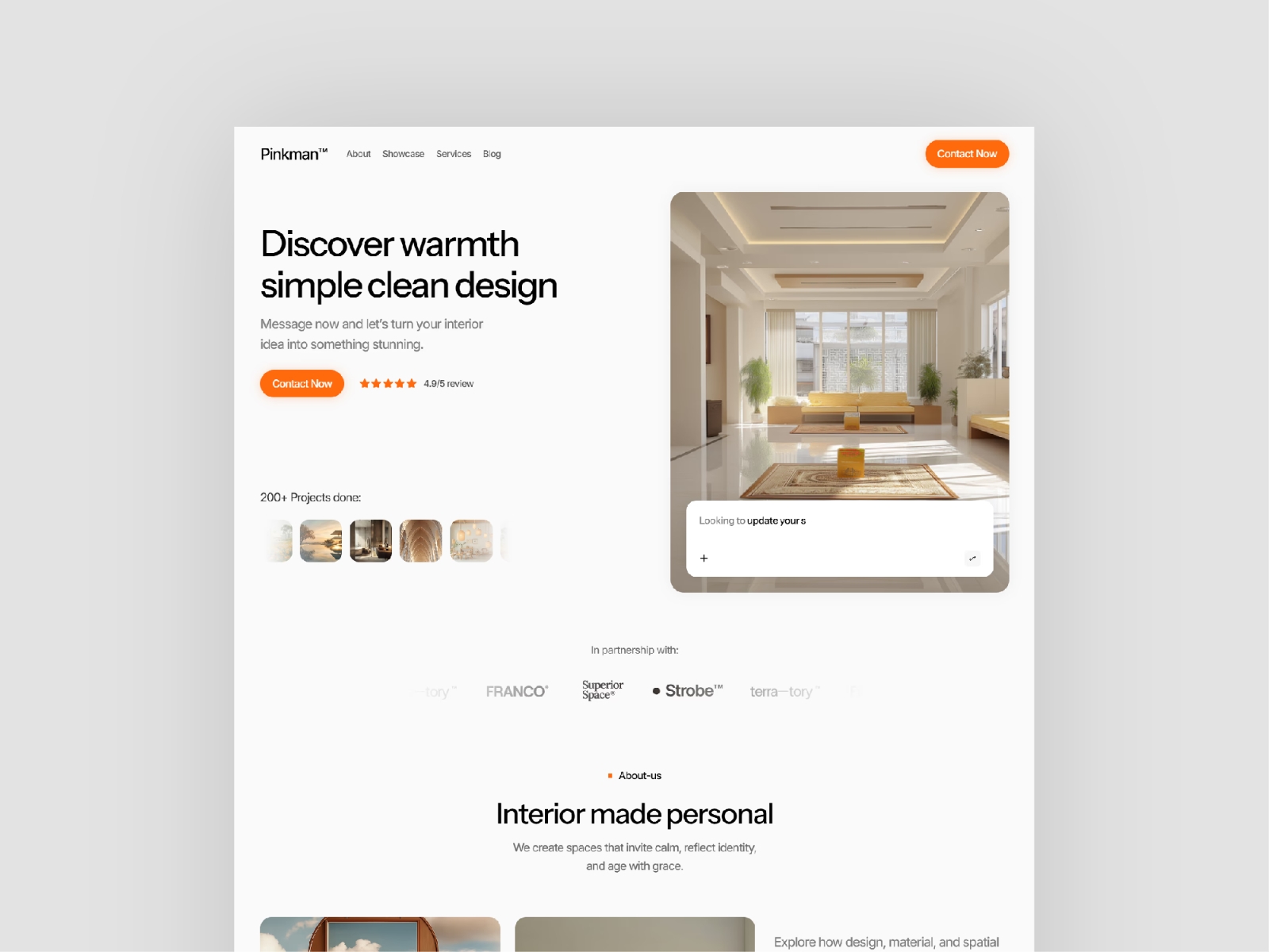 Pinkman is a sophisticated Framer template designed for interior design studios, architects, and creative decor agencies. It features a bold, high-contrast aesthetic that balances minimalist layouts with high-impact visual sections, making it the perfect choice for showcasing high-end portfolios and residential projects.