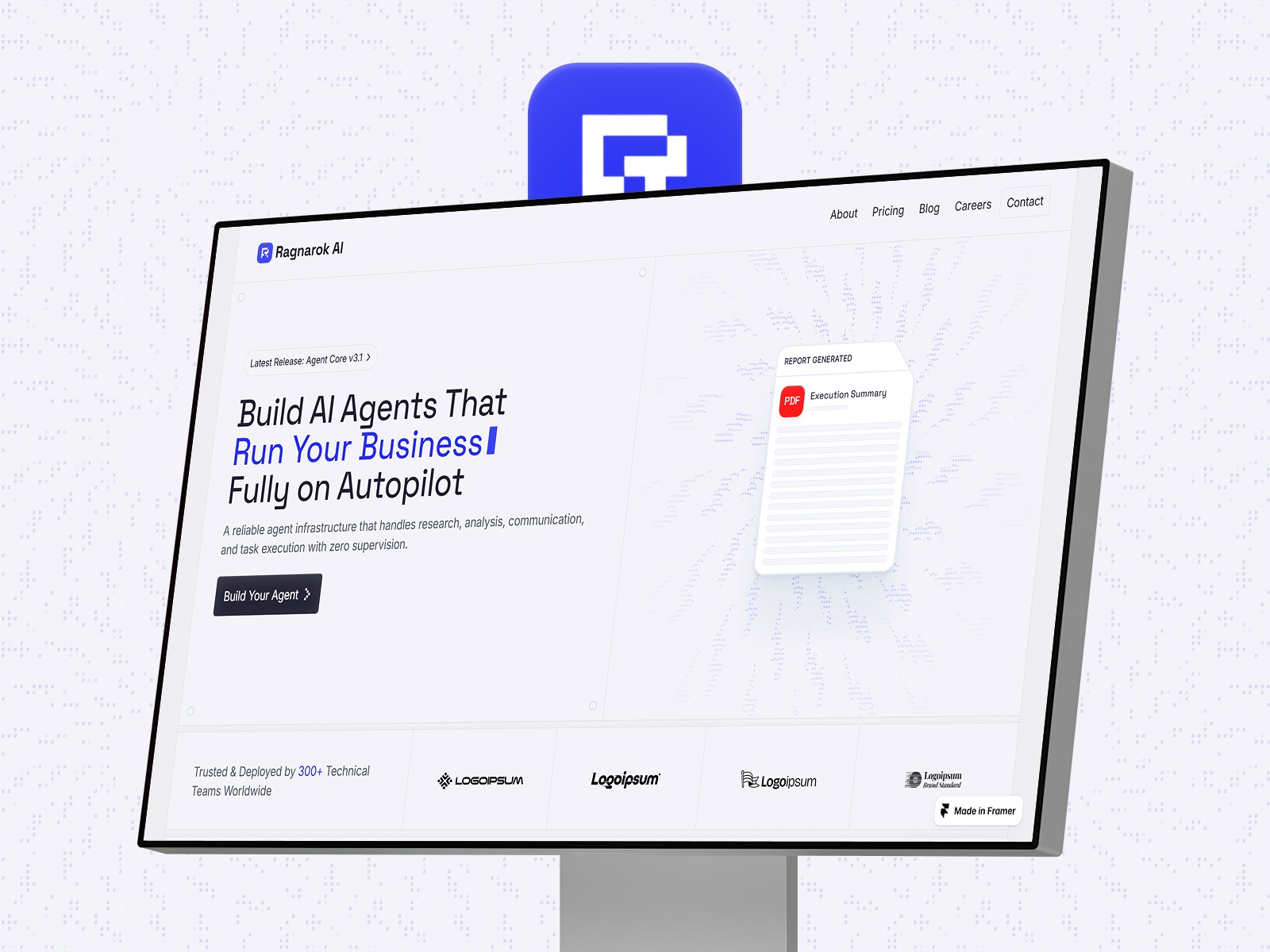 Ragnarok AI is a Framer template built specifically for AI agent startups, AI-first products, and modern SaaS teams who want to stand out in a crowded market. It features a bold ASCII-inspired design system, structured box-based layouts, and motion-driven components that immediately signal technical depth and credibility.