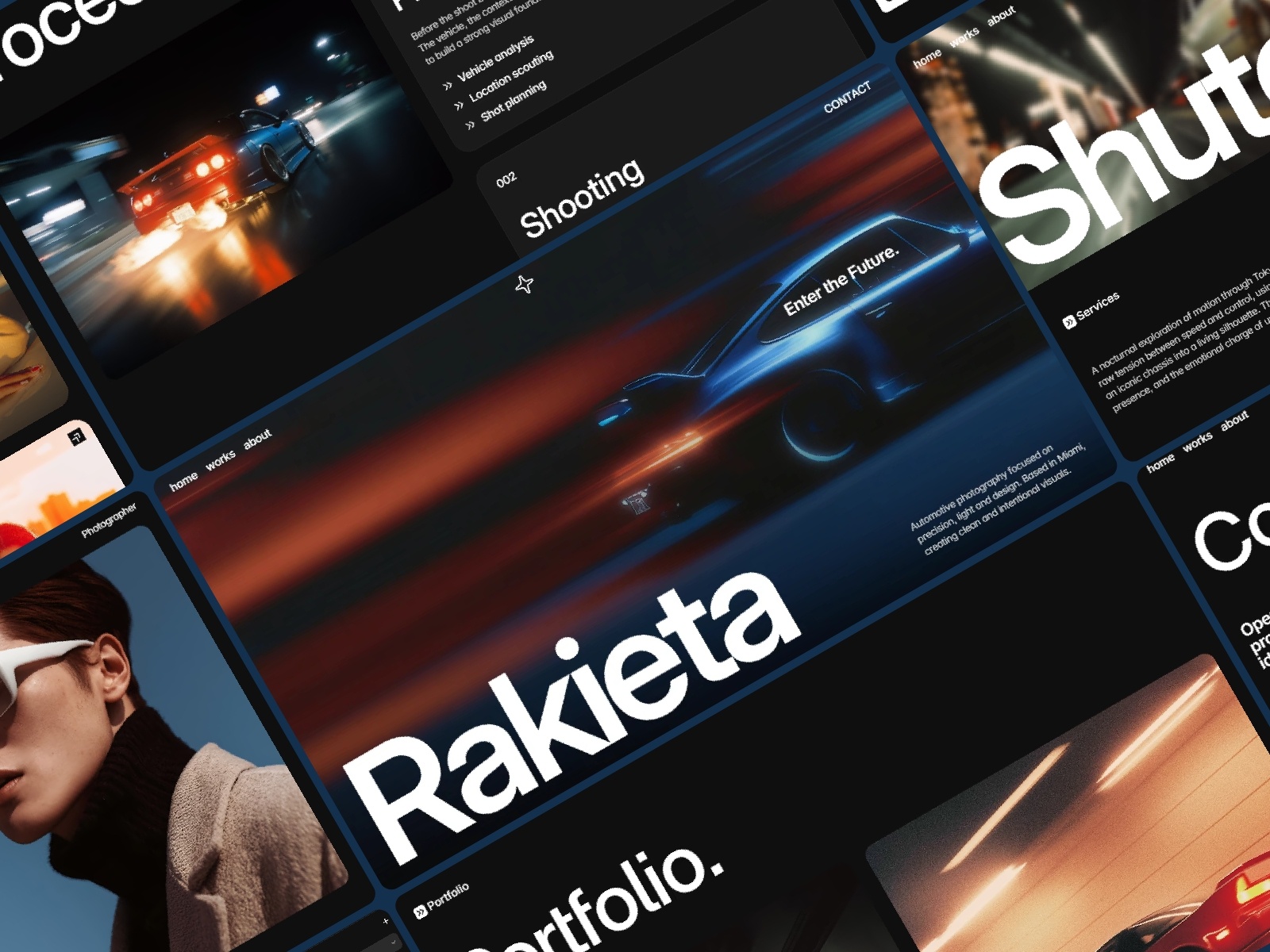 Rakieta is a cinematic multi-page Framer portfolio originally inspired by high-performance automotive photography, yet designed to adapt seamlessly to any visual discipline.