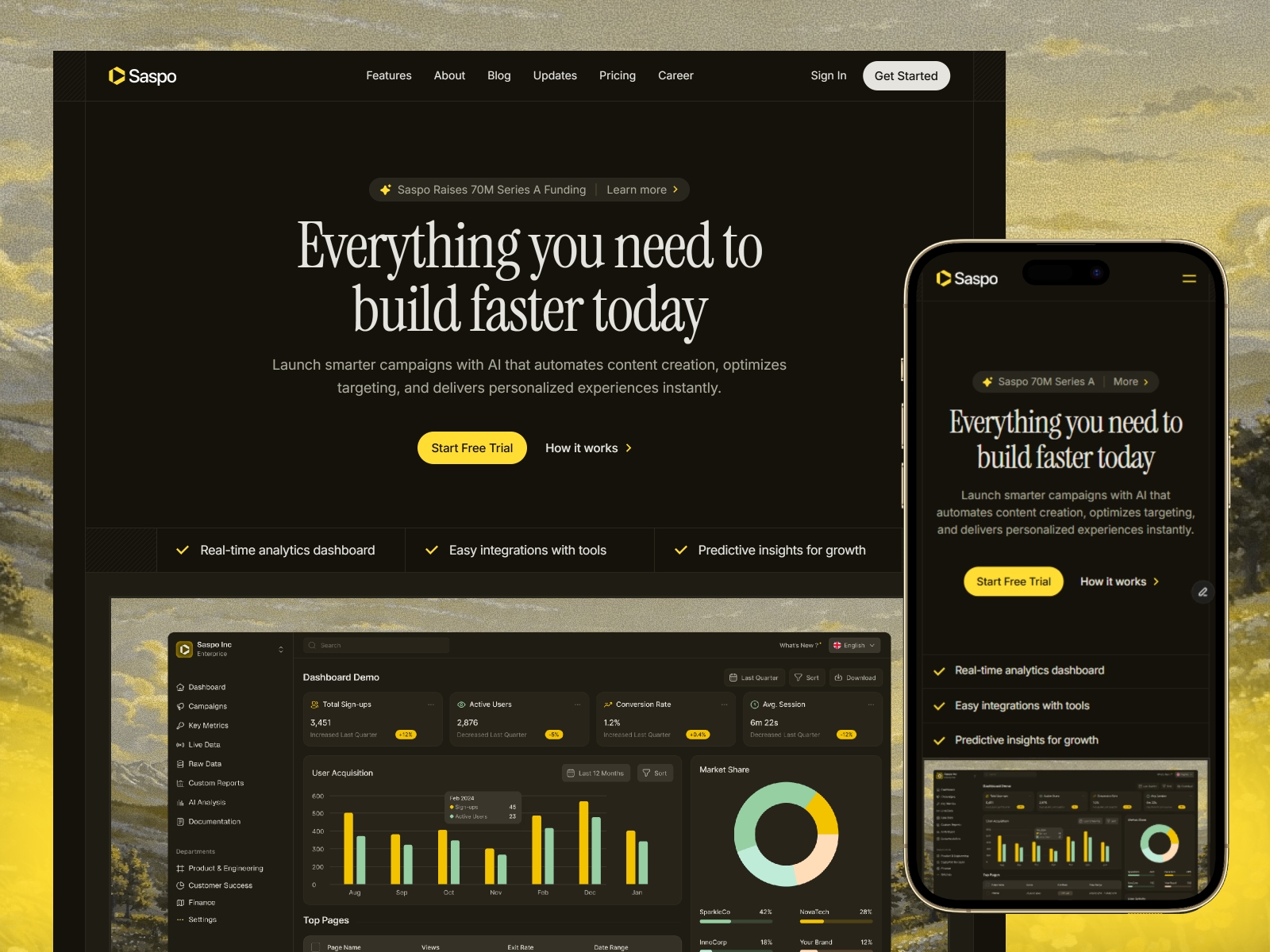 Launch your AI or SaaS marketing site in hours using the Saspo Premium Template