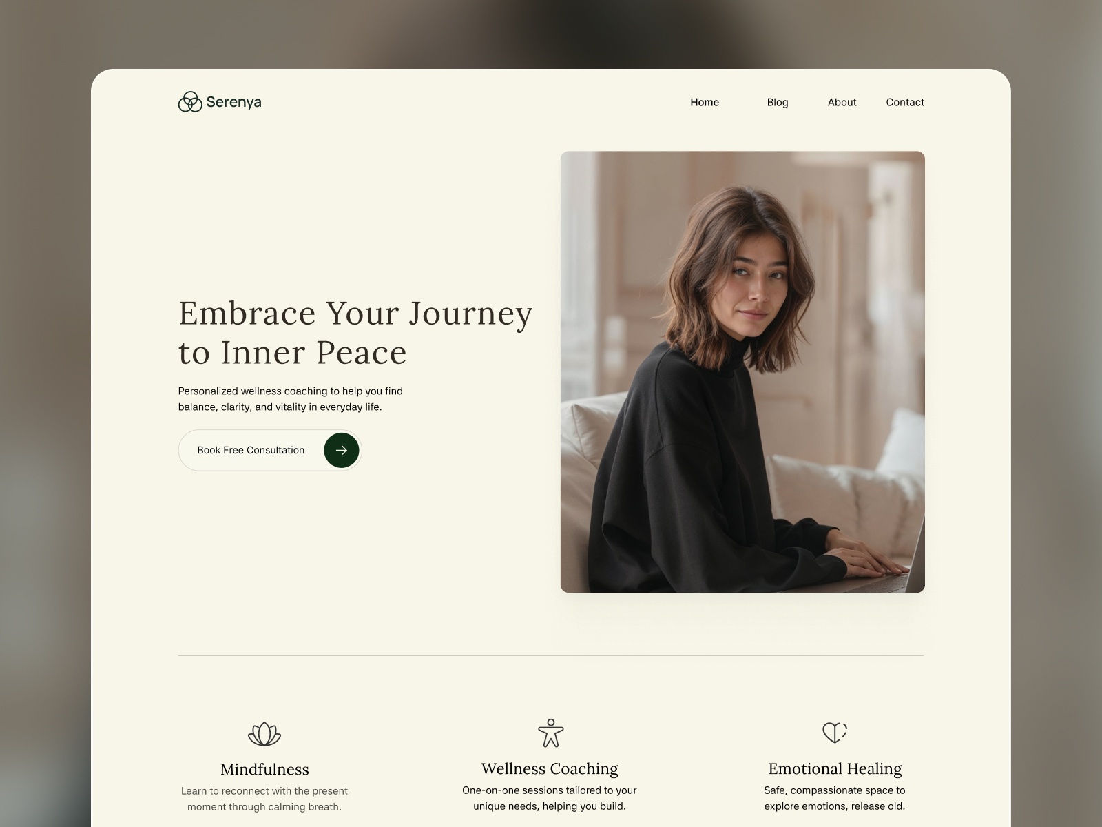 Elevate your practice with Serenya. A premium, minimalist Framer template designed for wellness leaders. Features a full CMS for Services and Blogs, a 98/100 speed score, and intentional typography. Launch your coaching brand in minutes, not months.